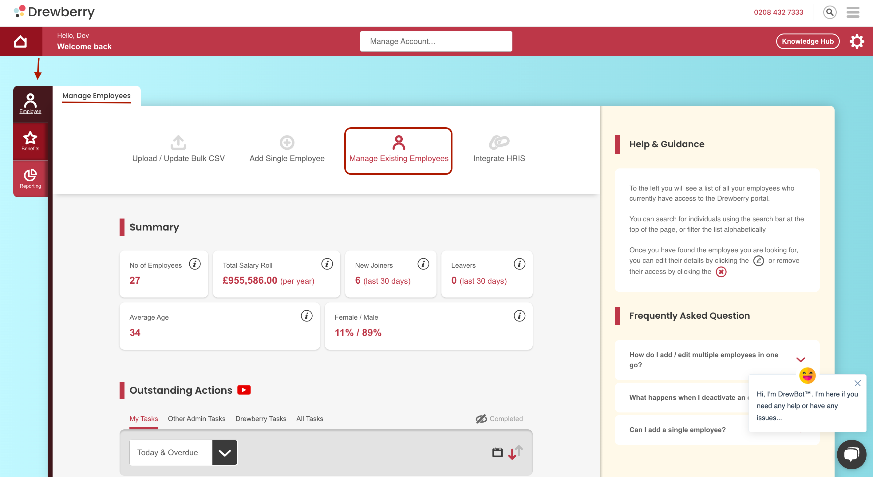 To bulk upload family members go to your Drewberry Admin Centre and then head to the employee benefits tab.