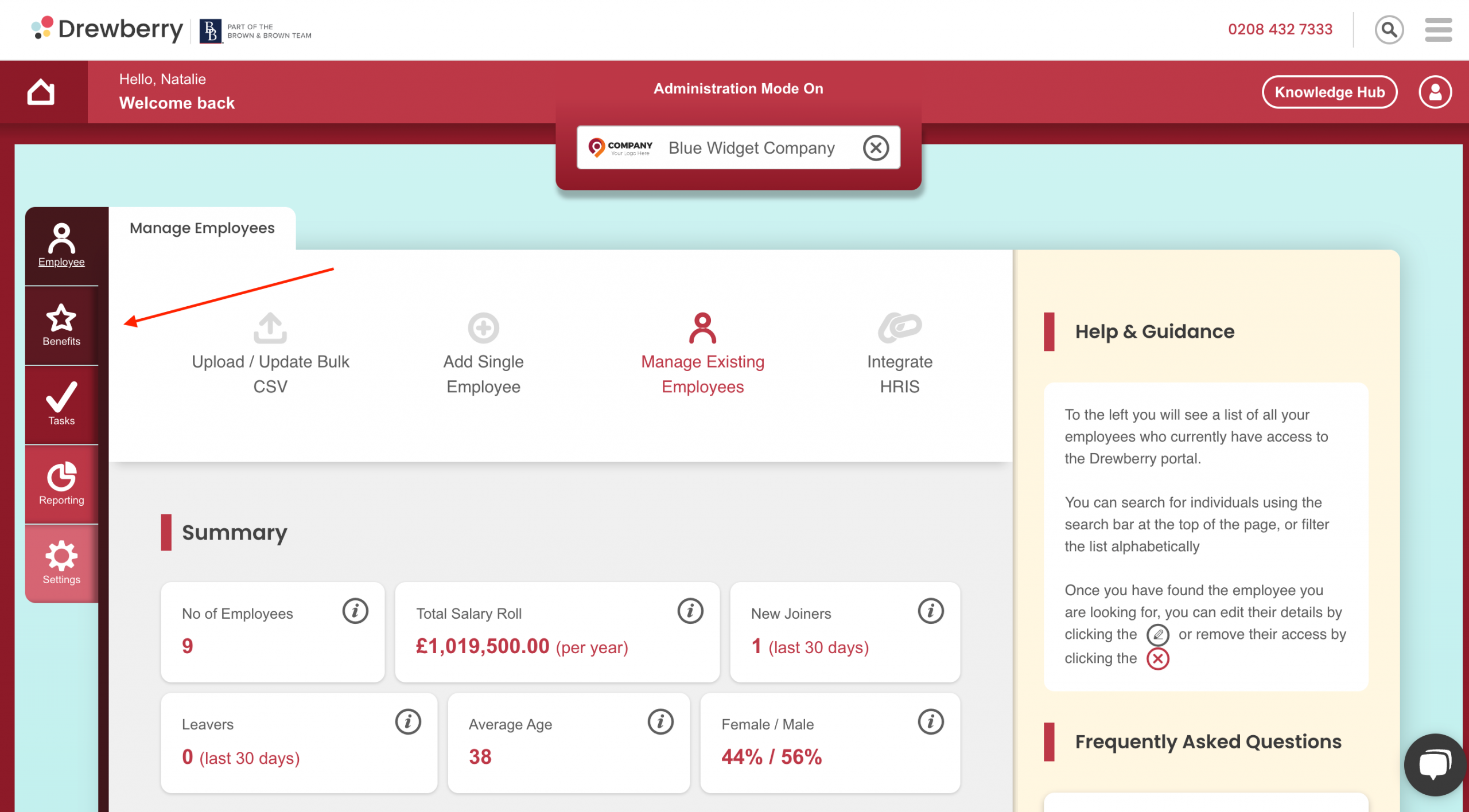 Once in the admin centre, go to the ‘Benefits’ tab.