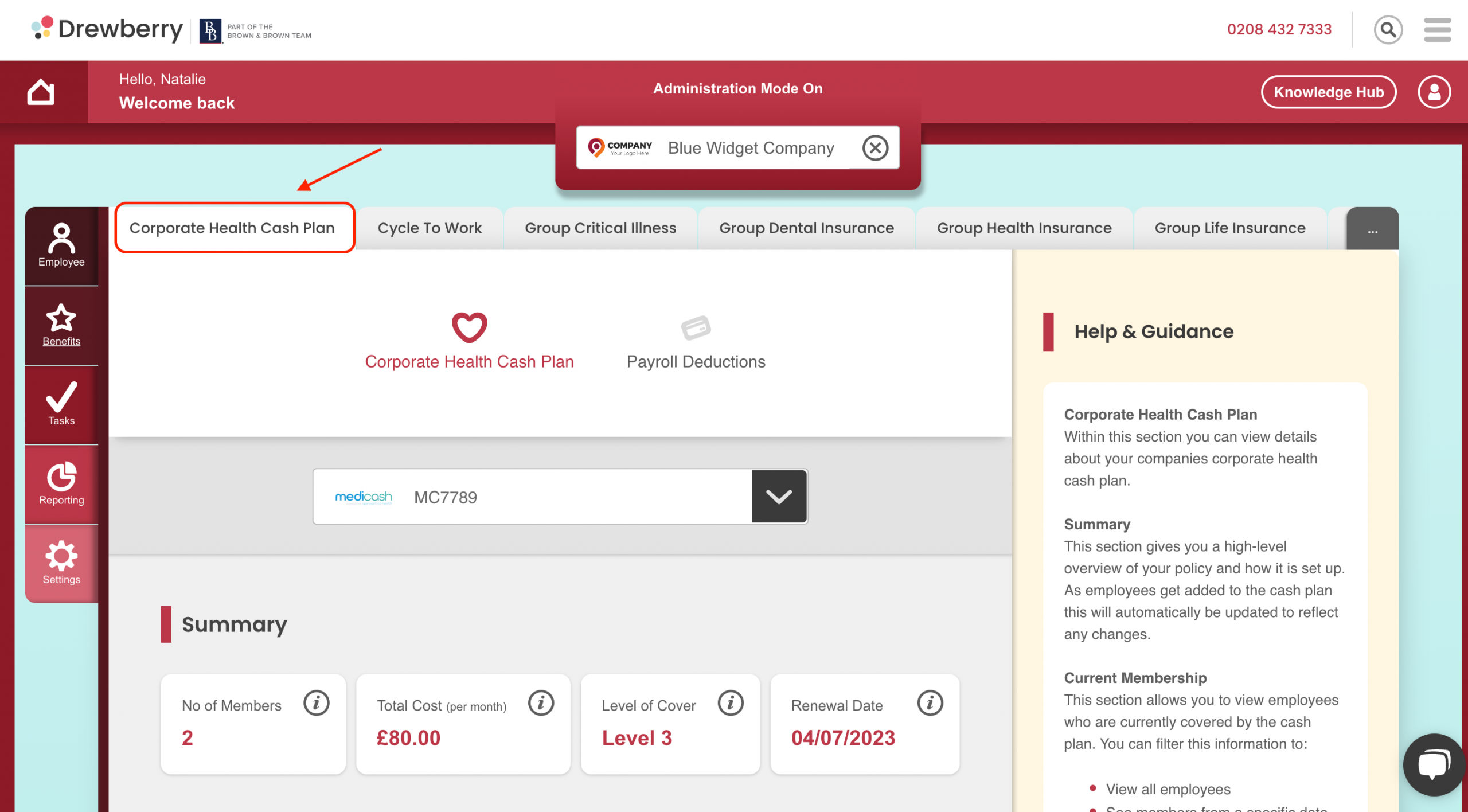 From the top of the benefits tab, then choose the ‘Health Cash Plan’ tab.