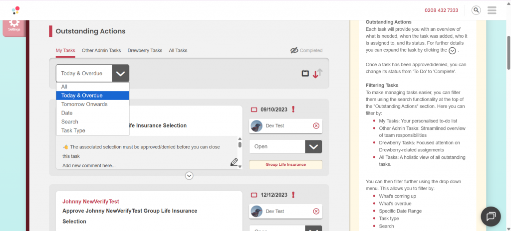 Any task created here will automatically link to the benefit it relates to, helping you manage actions tied to specific schemes or selections.