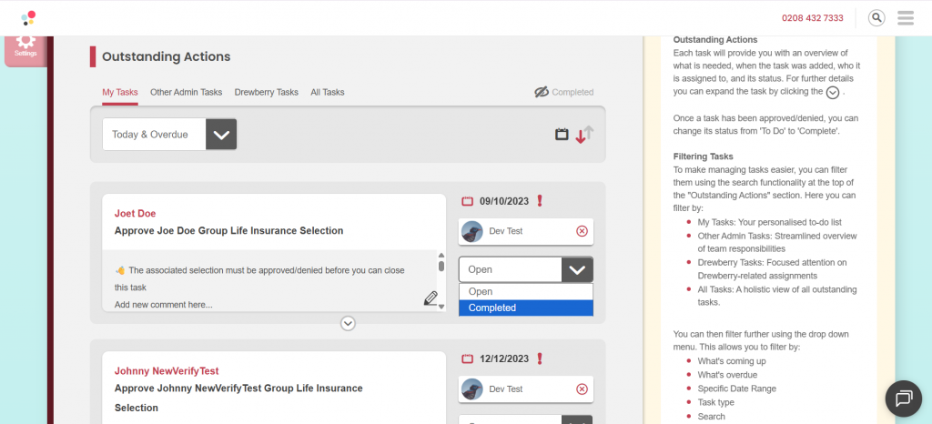 This enhancement brings simple task management to the My.Drewberry platform. You can create, assign, and track tasks related to specific employees and benefits all from within the Admin Centre.