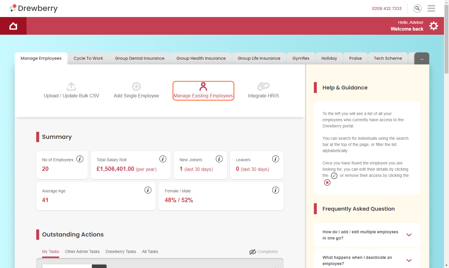 If you have integrated your HRIS, any newbies added will automatically pull through to your My.Drewberry portal. They’ll be assigned the relevant benefits and their record will remain in the platform for as long as they’re employed. Either way, you’ll only have to add new joiners once, and we’ll handle everything with your external benefit providers.