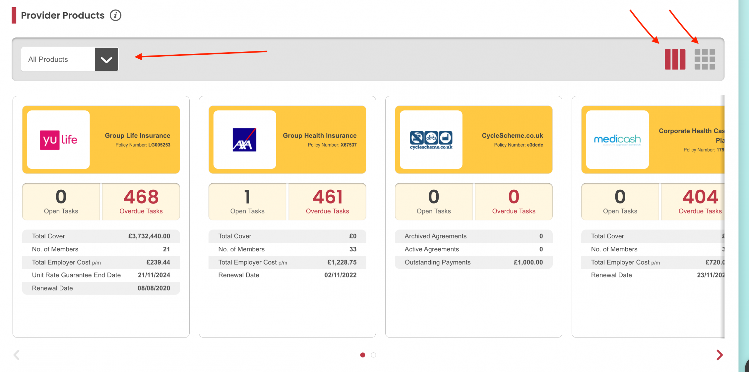 Looking for something specific? Use the filter to sort your benefits by product type. This is deal if you want to focus on a particular scheme or provider. You can also switch between scroll and grid views, depending on how you prefer to navigate.