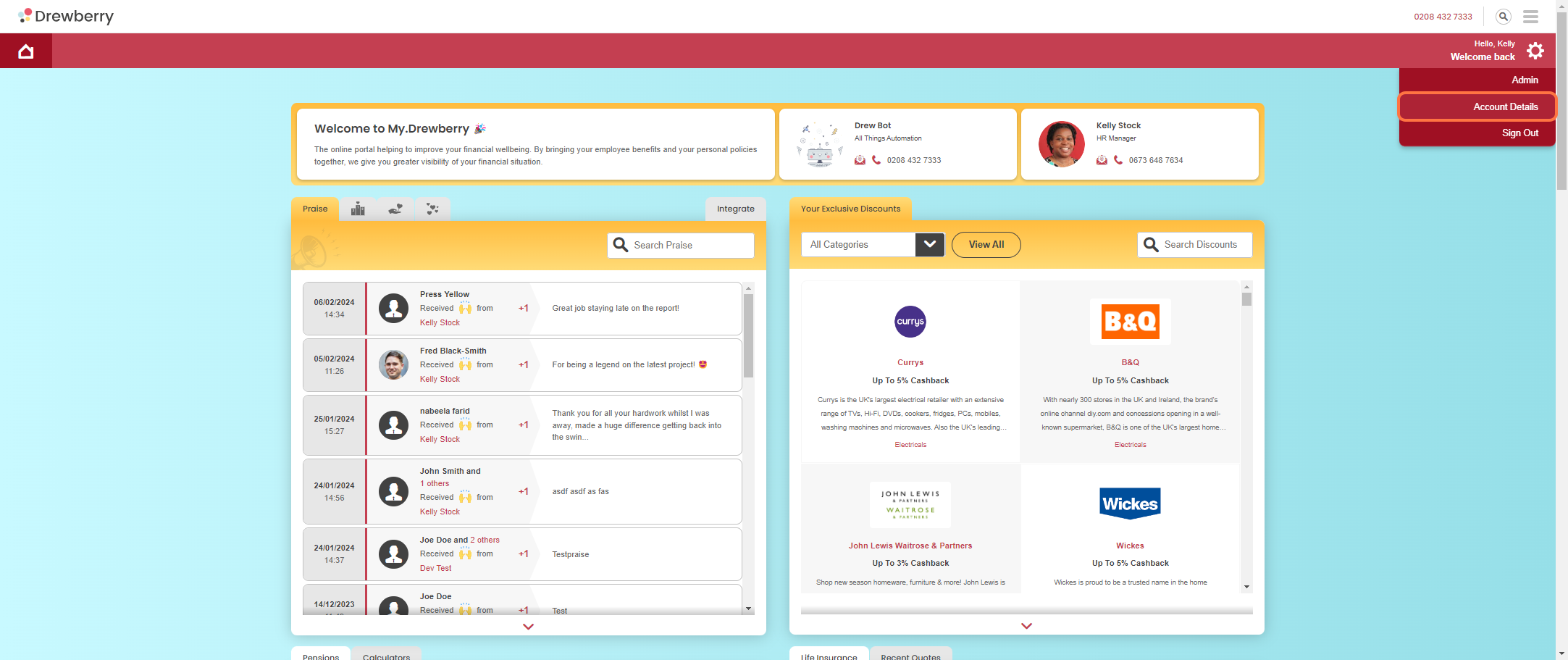 Click the Settings cog in the top right hand corner of your My.Drewberry dashboard and select “Account Details”.