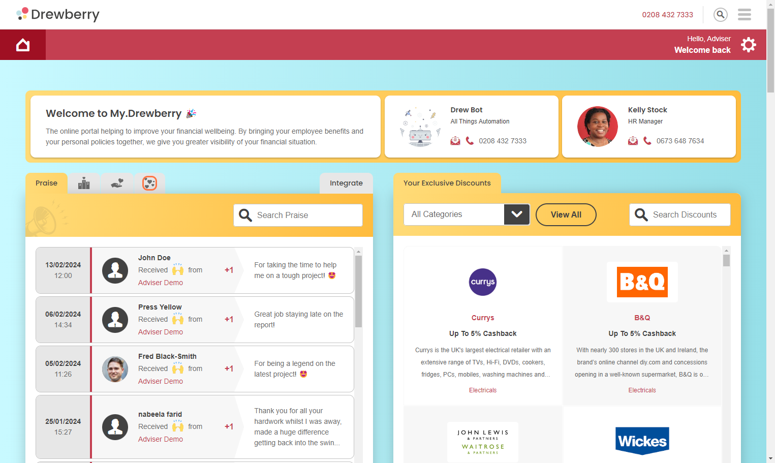 When you first log in to your My.Drewberry portal, you’ll see the Praise card straight away on the left-hand side.
